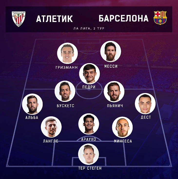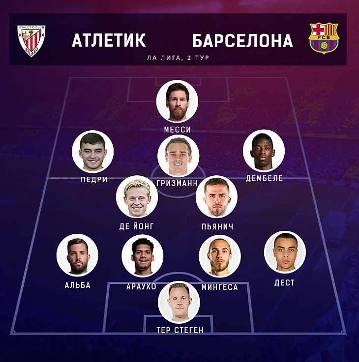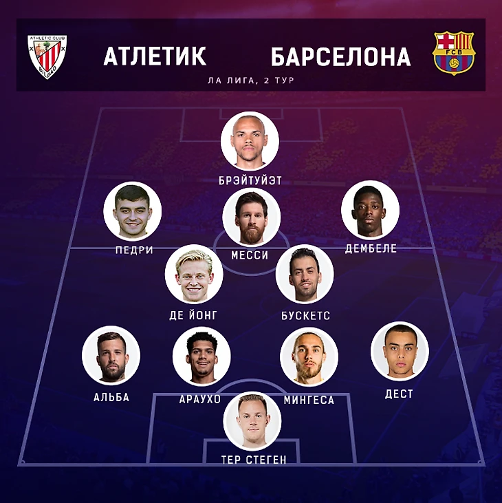 №1: 4-2-3-1, Брэйтуэйт в старте, Араухо и Мингеса в защите, Месси — десятка.