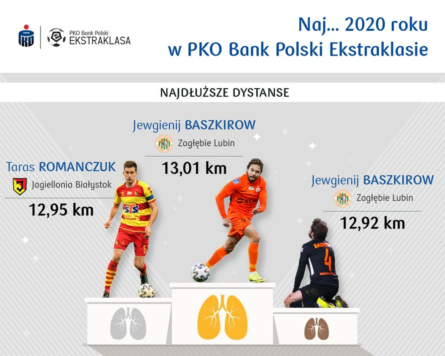 На фоне самоуничижительной оценки нашего футбола, можно было бы предположить, что пару успешных месяцев россиянина - это случайность. Скажем, Башкиров проявил упоротую сознательность и был готов на 110% к первой заграничной командировке в жизни (поляки же, как мы мним, близкие нам люди: славяне - “имперцы”, т.е. среди прочего, “раздолбаи” и готовы к рестарту не были). Но начался новый сезон 2020/2021 и статистика сайта “Экстракласса” не исчезла. Башкиров как бегал весной больше всех, так и бегает больше всех осенью.