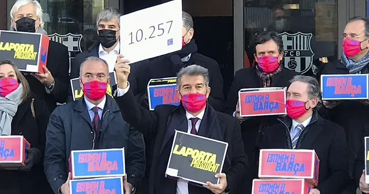 Лапорта прибыл на Камп Ноу с 10 257 подписями, которые он собрал для регистрации на президентских выборах.