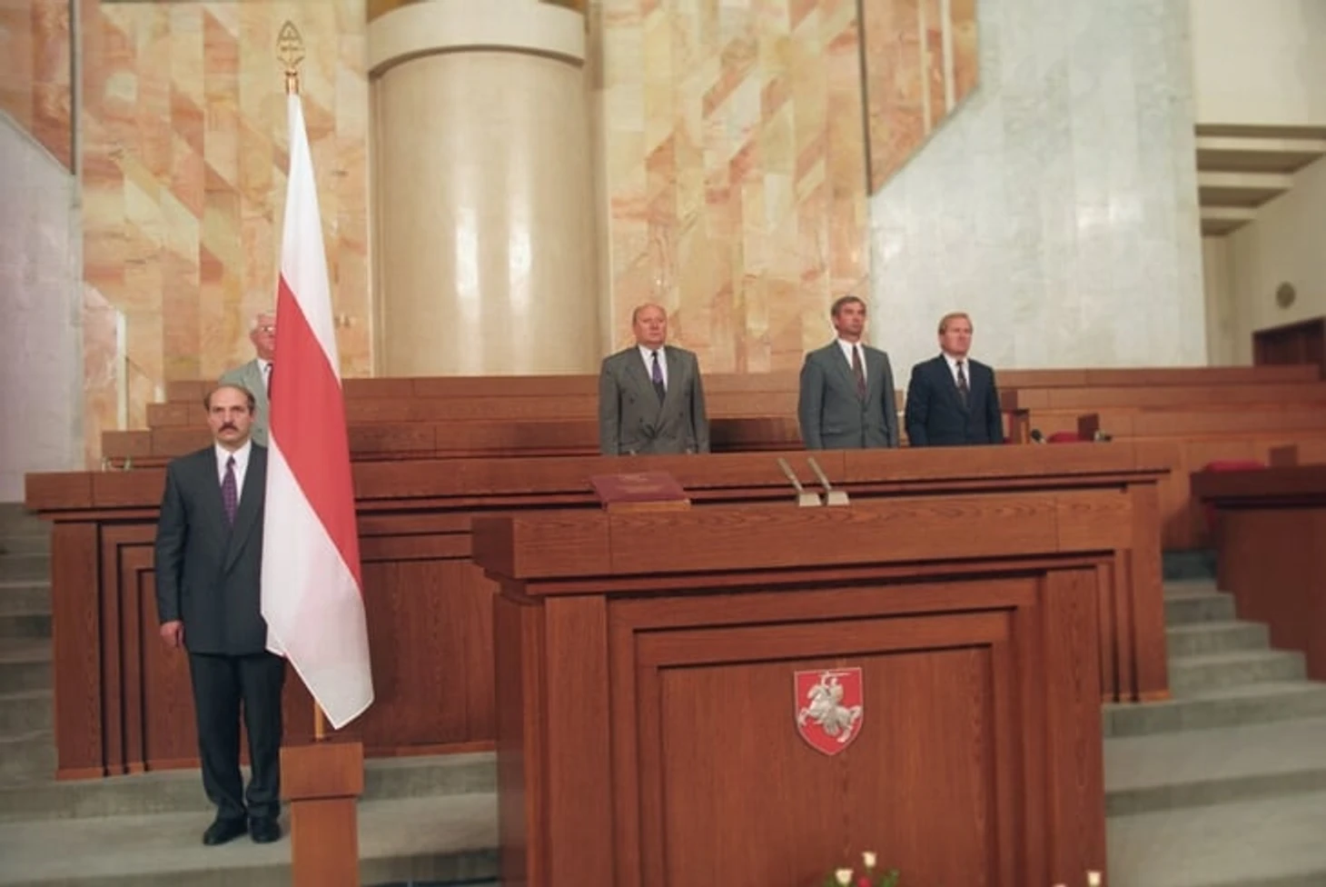 Бело-красно-белый флаг с изображенным на нем гербом «Погоня» имели Белорусский гусарский полк и Гродненский лейб-гвардии гусарский полк. Они воевали вместе с русской армией против Наполеона. В 1918 году Клавдий Дуж-Душевский предложил утвердить его как флаг Белорусской Народной Республики. А с 1991 по 1995-й это официальные символы Беларуси. Под этим флагом Лукашенко принимал присягу как президент.