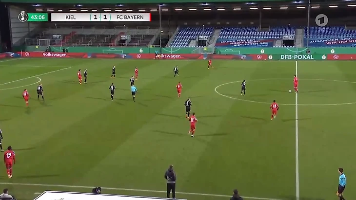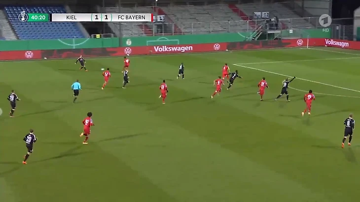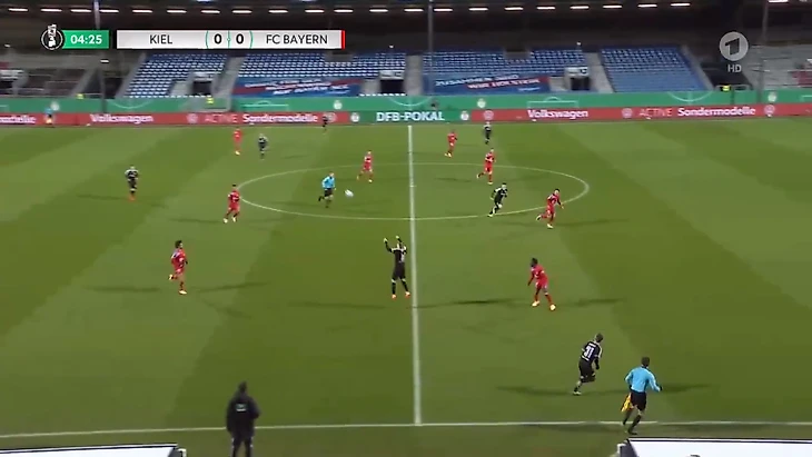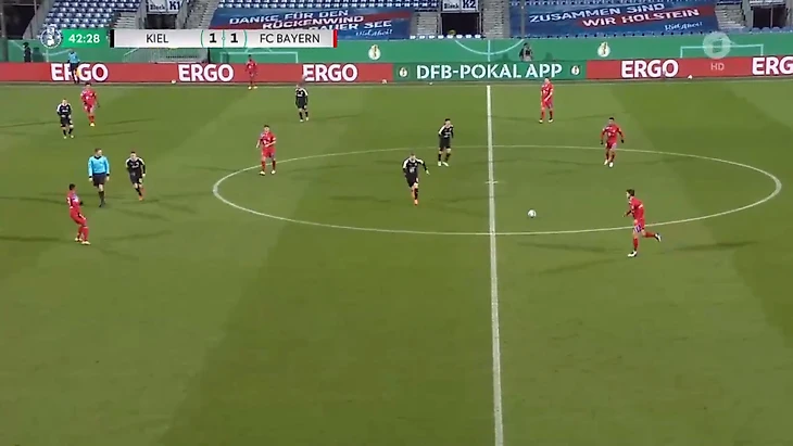 Игроки «Хольштайна» относительно спокойно преодолевали давление за счет индивидуальных действий. Стоит отдать должное хозяевам, они не боялись «Баварию», не стеснялись идти в дриблинг и разыгрывать коротко даже при высоком давлении. Важно и то, что их уверенность не переходила в самоуверенность и постоянные обрезы с привозами.