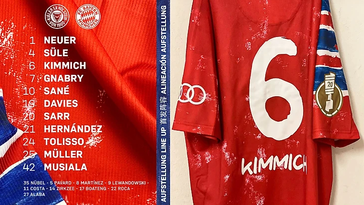 Перед тем, как мы начнем, я предлагаю взглянуть на стартовые составы команд. Если конкретнее, то на состав «Баварии». Мюнхенцы выставили основных игроков и явно подошли серьезно к предстоящему кубковому матчу.