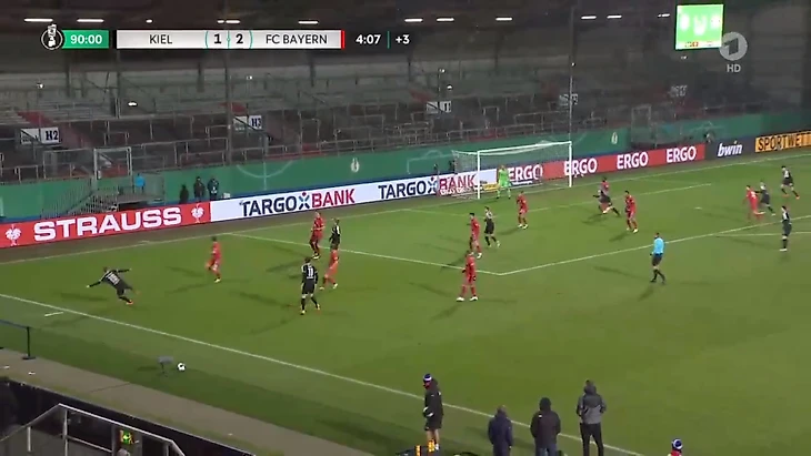 Второй гол «Хольштайн» забил в самой концовке второго тайма. Киль устроил навал у чужой штрафной, и он привел к успеху — центральный защитник Финн Валь переквалифицировался в форварда и успешно закинул мяч в сетку Нойера после флангового навеса. Основные претензии тут надо предъявлять Дэвису, он вообще забылся и не опекал игрока, но и Эрнандес не контролировал ситуацию позади, даже не поинтересовавшись, есть ли там кто-то.