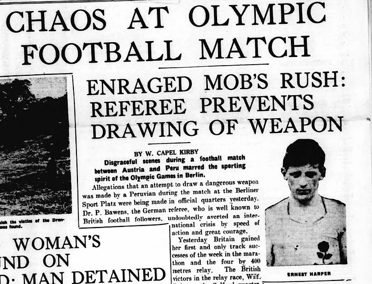 Неудача немцев заставила руководство страны обратить свой взор на Австрию, которая, как оно рассчитывало, поддержит арийскую гордость. Эта команда также была составлена из игроков-любителей и к знаменитой Вундертим не имела никакого отношения. В четвертьфинале Австрия, возглавляемая англичанином Джимми Хоганом, встретилась с Перу в самом скандальном матче Олимпиады.