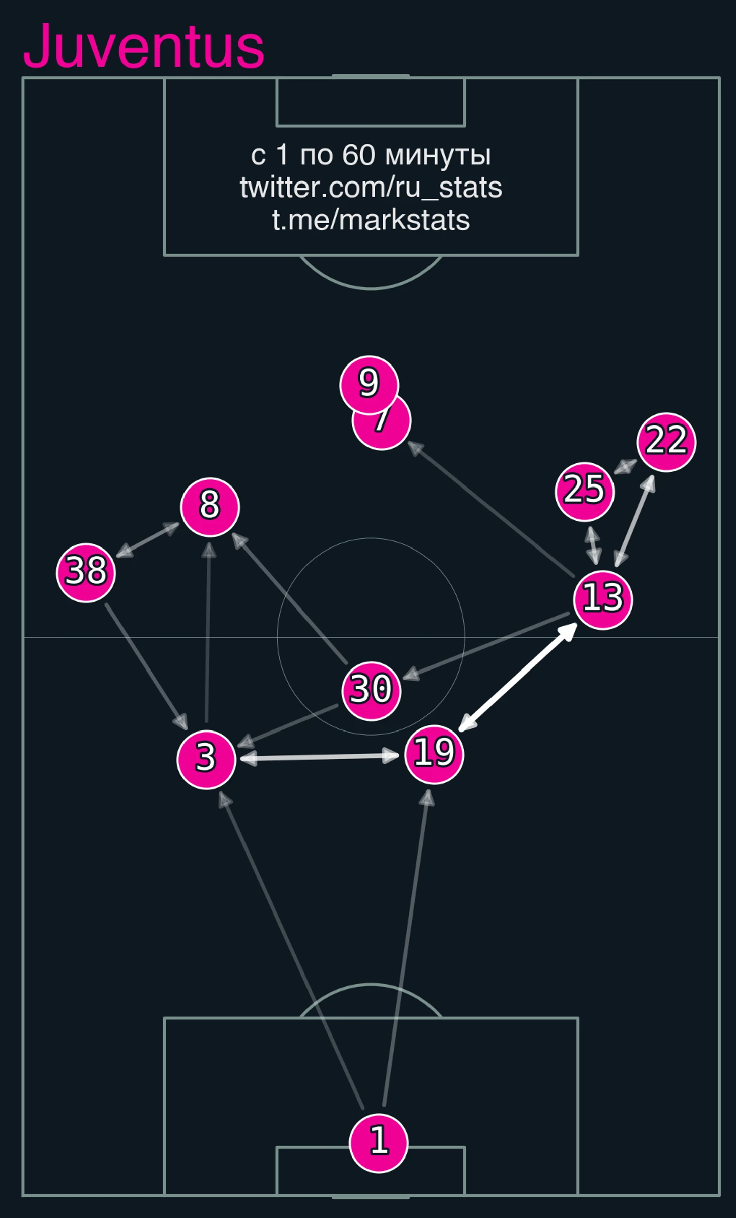 «Юве» лидер Серии А по PPDA — 8.04, однако, в этом матче «старая синьора» хоть и не отказалась от постоянного высокого давления ( 14 по PPDA), но не давила в своем привычном темпе (а если и делала это, то откровенно ужасно, особенно во втором тайме после замен Пирло) . Косвенно это реверанс в сторону противника: «Интер», как и «Юве» достаточно уверенно разбирается с чужим прессингом, и, вдобавок, очень неплохо контратакует.