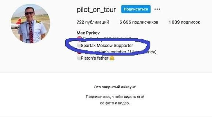 Пилот авиакомпании Nordwind Максим Пырков, который назвал клоуном оппозиционера Алексея Навального, является болельщиком «Спартака».