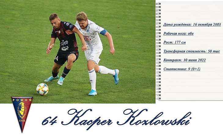 Каспер Козловски дебютировал в Экстракласе в возрасте 15 лет 7 месяцев и 3 дней. В прошлом сезоне полузащитник провел в элите польского футбола только 3 матча, а точнее 27 минут, большую часть сезона проведя в резервах «Погони». Перед нынешним сезоном Коста Руньяич в процессе подготовки давал шанс молодежи. Одним из тех, кто себя лучше всех проявил, был Каспер Козловски. И если в первых матчах Каспер выходил на замену в концовках, то последние четыре встречи неизменно начинал в стартовом составе, щецинцы, кстати, все четыре матча выиграли, Каспер отличился одним ассистом, а лига признала 17-летнего полузащитника лучшим молодым игроком Экстракласы в декабре.