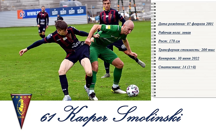 Каспер Смолински - еще один пример прекрасной работы академии щецинской «Погони». Привлекаться к играм основной команды Каспер начал в концовке прошлого сезона. За три матча, в которых Смолински наиграл 59 минут, полузащитник забил гол и отдал один ассист. В нынешнем сезоне Смолински стал получать уже куда больше игрового времени.