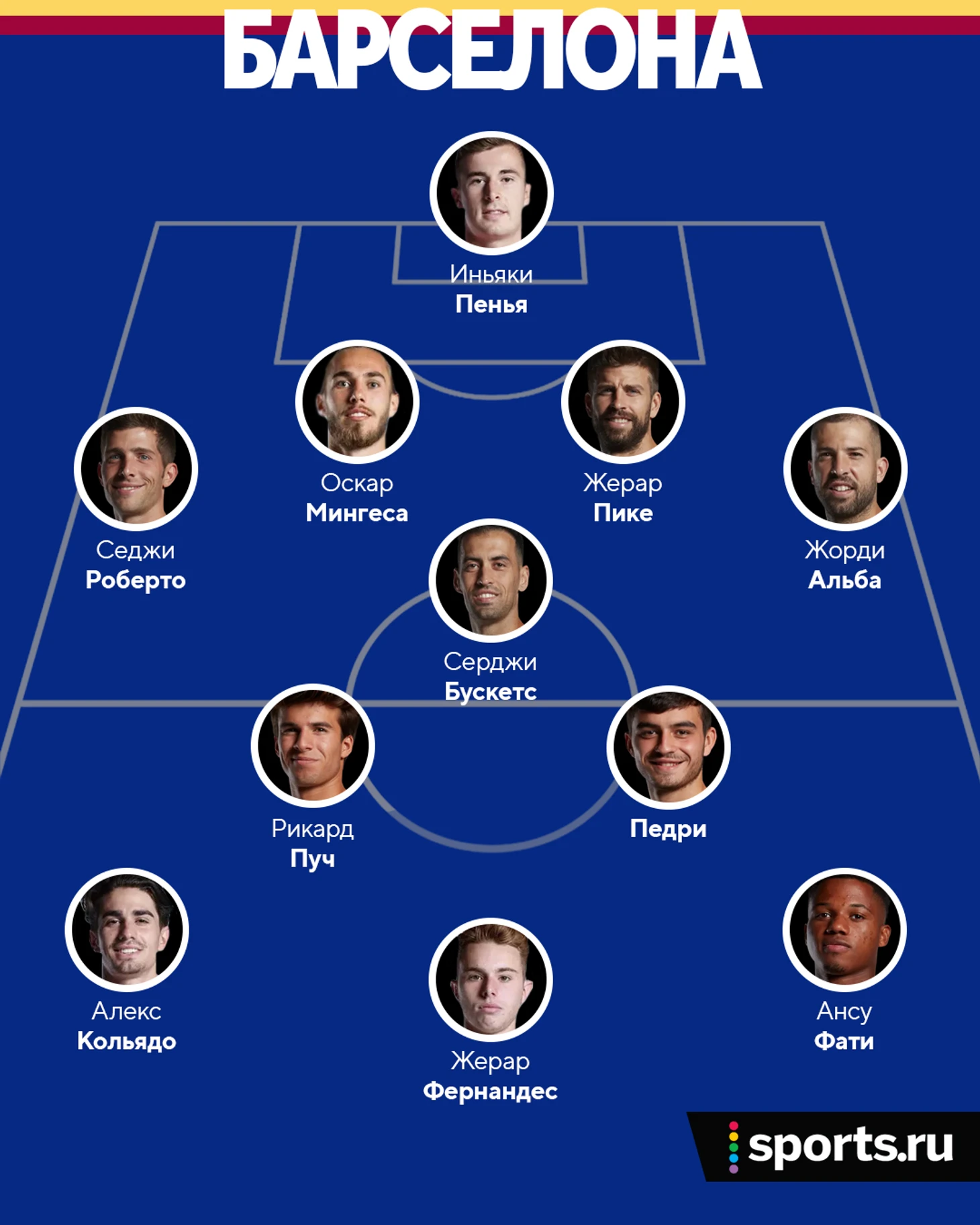 В составе «Барсы» останется пять игроков основы – это Альба, Пике, Роберто, Бускетс и Фати. Остальные позиции отойдут под молодых футболистов из запаса и «Барселоны» Б. Пуч, Педри, Мингеса должны будут не просто теперь выходить на замену, а быть основными игроками.