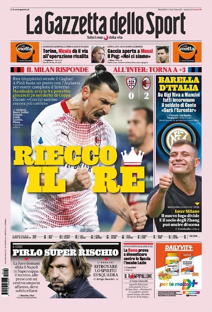 Ибра, приговор. Заголовки Gazzetta, TuttoSport и Corriere за 19 января