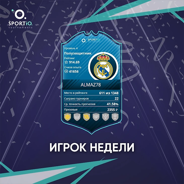 Almaz78 - единственный участник прошлонеделых турниров, которому удалось финишировать в топ-5 в двух турнирах. Almaz78 взял «бронзу» в Турнире Бундеслиги и занял 5-ое место в Турнире Серии А!