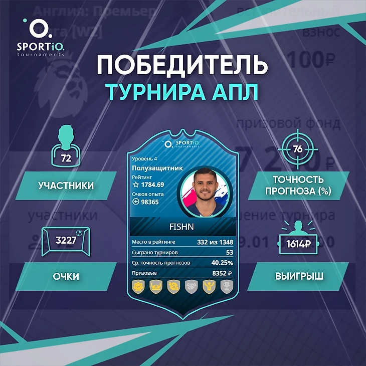 В Турнире АПЛ топ-1 стал FishN, его выигрыш составил 1614₽!