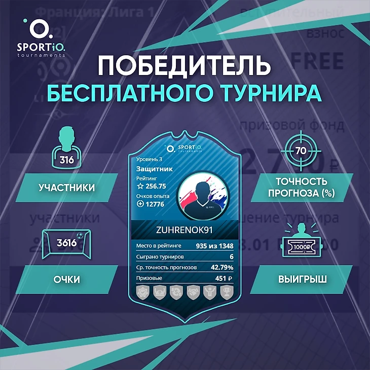 zuhrenok91 был сильнее всех в Бесплатном турнире и выиграл билет на турнир со взносом 1000₽!