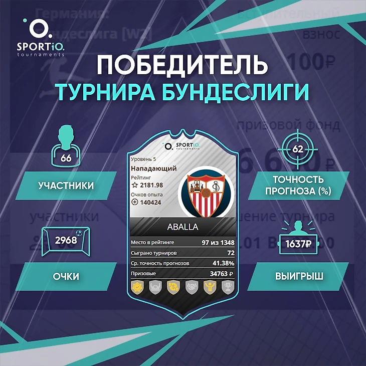 aballa был сильнее всех в Турнире Бундеслиги, его выигрыш равен 1637₽!