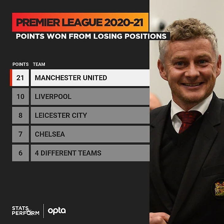 Юнайтед 94-ый раз победил в матче АПЛ, пропустив первым. Это рекорд турнира;