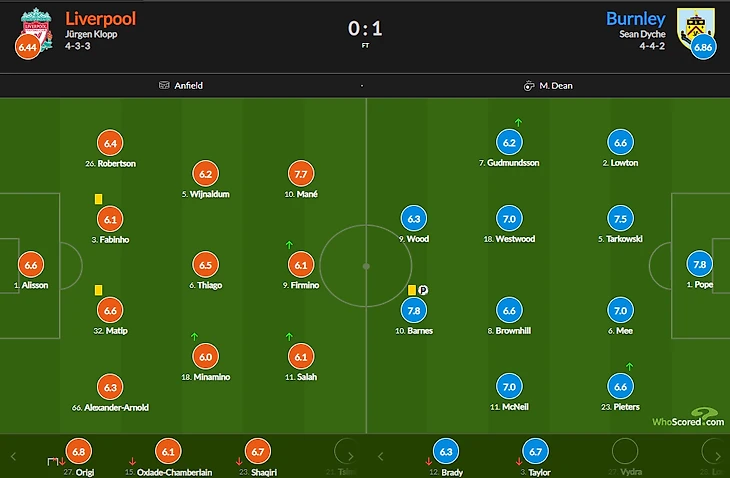 Единственную высокую оценку в матче с "Бернли" получил Мане - 7,7.