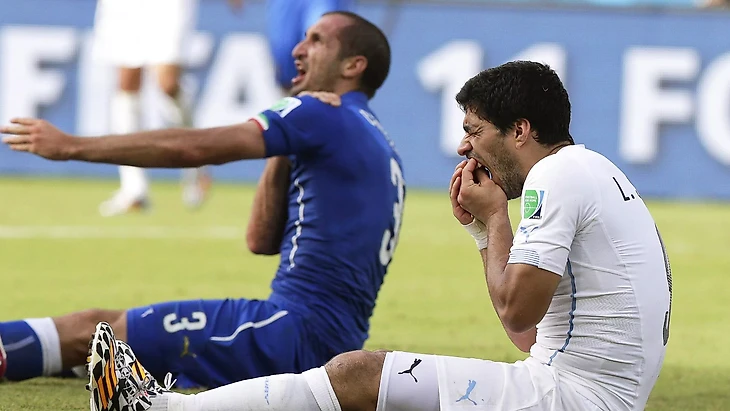 Суарес пропустил часть сезона после того, как был признан виновным в укусе итальянского игрока Джорджо Кьеллини на Чемпионат мира по футболу FIFA 2014 . В рамках отстранения ему запретили заниматься «футбольной деятельностью», включая тренировки за «Барселону», на четыре месяца (до 26 октября). Ему также запретили входить на любой стадион, даже в качестве зрителя, в тот же период.