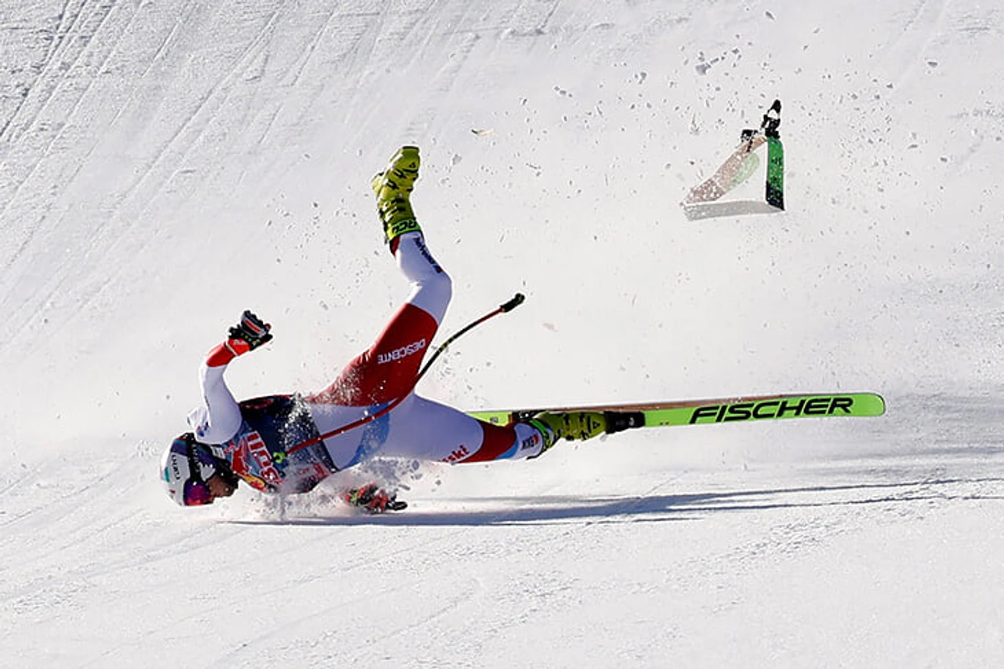 22 января. А следом – страшный момент. Сразу скажем: с Урсом Криенбюлем сейчас все нормально (насколько может быть после жуткого падения на голову при скорости 140 км/ч). У швейцарского горнолыжника сотрясение мозга, перелом ключицы, разрыв связок – но он жив и планирует вернуться в следующем сезоне.