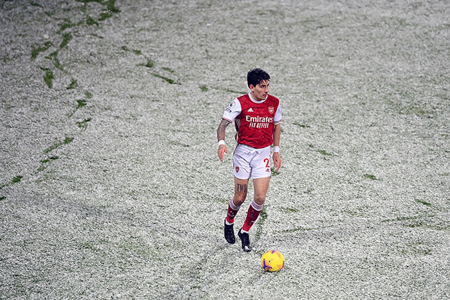 Зимняя сказка на матче «Арсенала»: по арене кружили снежинки, поле завалило два раза