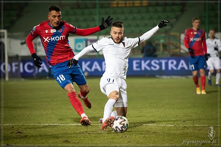 Коста Руньяич после одной из тренировок в ходе подготовке ко второй части чемпионата столкнулся с серьезной задачей. Каспер Козловски, ставший основным игроком щецинцев в конце 2020-го году получил повреждение и не попал даже в заявку на пятничный матч. Из-за лимита, согласно которому на поле должен находится молодой игрок, Косте Руньяичу пришлось выбирать между молодыми Смолинским, Мруком, Форнальчиком и Бенедычаком, выбор был сделан в пользу последнего. Из-за этого на лавке запасных остался основной нападающий щецинцев словенец Лука Захович, шанс дебютировать за гостей имел также Павел Столярски, перешедший из «Легии» зимой.