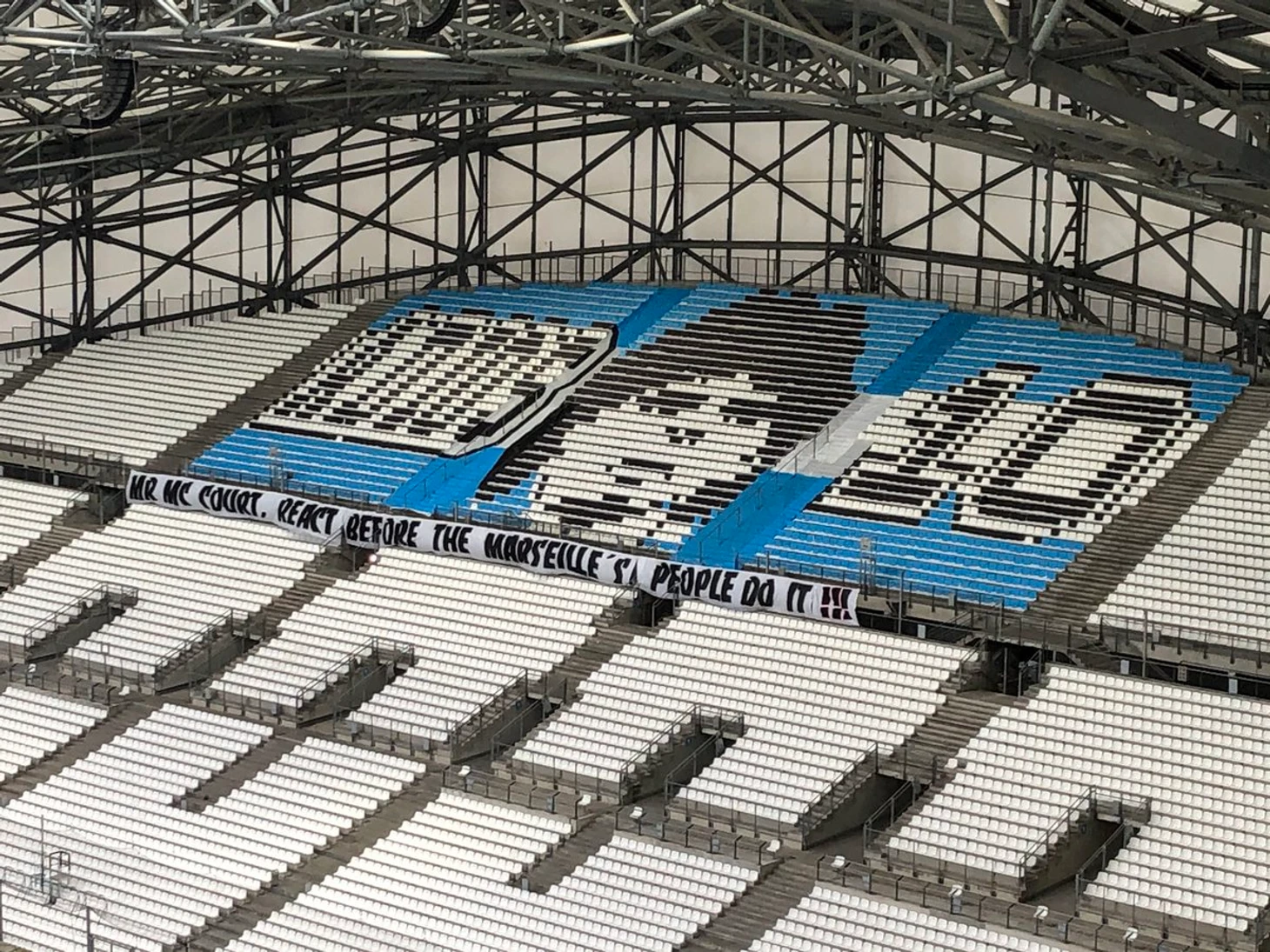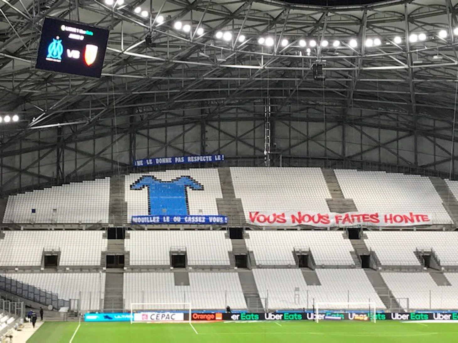 Несмотря на то, что матчи чемпионата Франции проходят без болельщиков из-за коронавируса, фанаты "Марселя" научились раскладывать красивые перфомансы и на пустой трибуне.