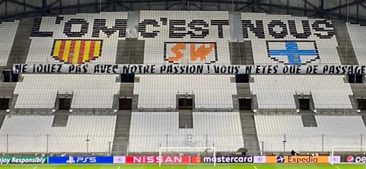 Старт этого сезона "Марселю" тоже удался — в 1-м туре на выезде был обыгран "Брест", а уже во 2-м — "ПСЖ" на "Парк Де Пренс" в том самом матче, омрачённым скандалом, когда судья раздал 12 желтых карточек и 5 красных, одна из которых была показана Неймару за удар Альваро Гонсалеса (да, я просил запомнить это имя, но ещё не время) по затылку — как скажет после игры сам бразилец, таковой была его реакция на расистские фразы в его адрес от испанского защитника. Далее "Марсель" временно забуксовал (поражение и 3 ничьи), но затем последовала серия из 5 побед подряд. Далее — снова неудачный отрезок из 5 набранных очков в 5 играх, но даже несмотря на это "Марсель" был в самом верху турнирной таблицы по потерянным очкам (имел 2 игры в запасе). Полным разочарованием для болельщиков стала Лига Чемпионов — в группе с "Манчестер Сити", "Порту" и "Олимпиакосом" они всерьёз рассчитывали на выход из группы вслед за англичанами, но реальность оказалось максимально суровой: 5 поражений в 6 играх с разницей мячей 2:13 и позорное последнее место в не самом сильном квартете. Именно болезненная неудача в главном клубном евротурнире вынудила фанатов "Марселя" возобновить свои выпады в адрес руководства клуба — в частности против президента клуба Жака-Анри Эйро. Вот так они месяц назад требовали его отставки у стен "Велодрома" во время матча "Марселя" с "Монпелье":