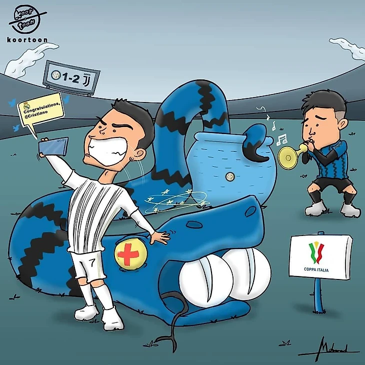 Вчера, "Ювентус" одержал волевую победу, в первом полуфинальном матче кубка Италии, над "Интером". За туринцев дублем отметился Криштиану Роналду.