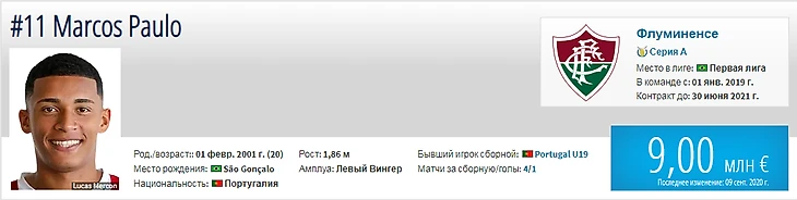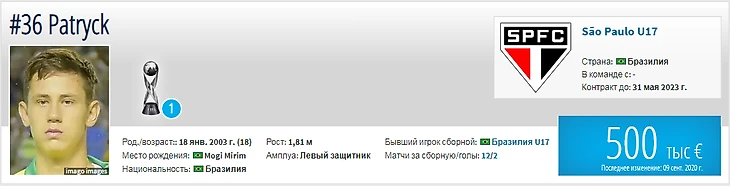 По трансферной стоимости сайта transfermarkt данный игрок стоить меньше, чем другие игроки из списка, но это пока. Думаю со временем, он будет стоить намного больше. Игрок очень молодой, так как только в январе ему исполнилось 18 лет. Многие называют его очень большим талантом Бразилии среди фланговых защитников. Сам игрок называет своим кумиром Дани Алвеса, который также был фланговым защитником. Игрок стал чемпионом мира со сборной Бразилии U-17. Из качеств выделим скорость, технику и отбор. Он по своему функционалу всё же оборонительный, а не атакующий фланговый защитник.