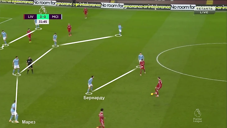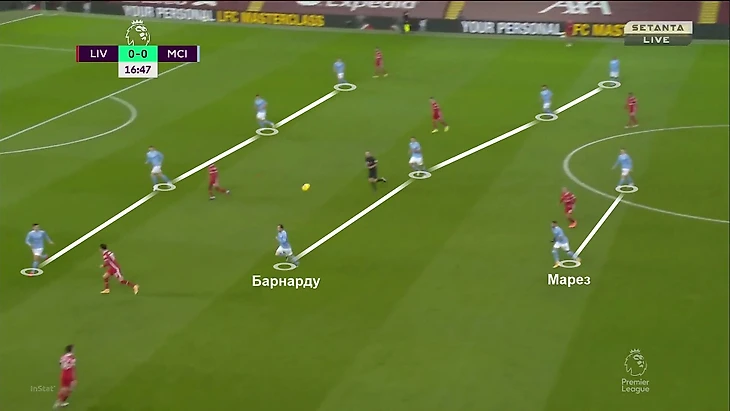 А иногда Марез сам работал на фланге, а Бернарду оказывался на одной линии с Фоденом: