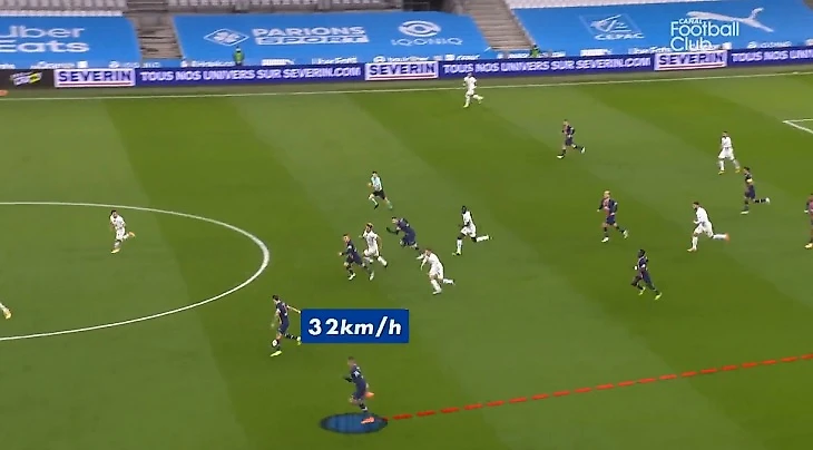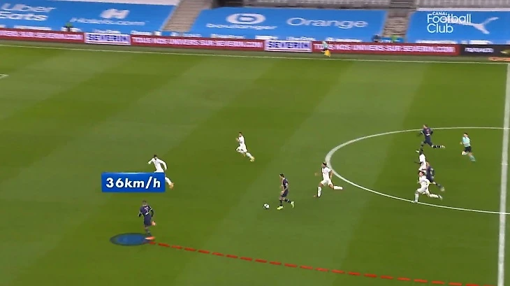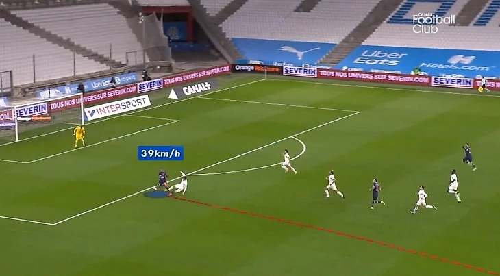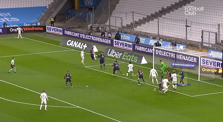 Canal+ даже разобрал рывок француза. Вот форвард (подсвечен синим кругом) помогает партнерам защищаться при угловом.