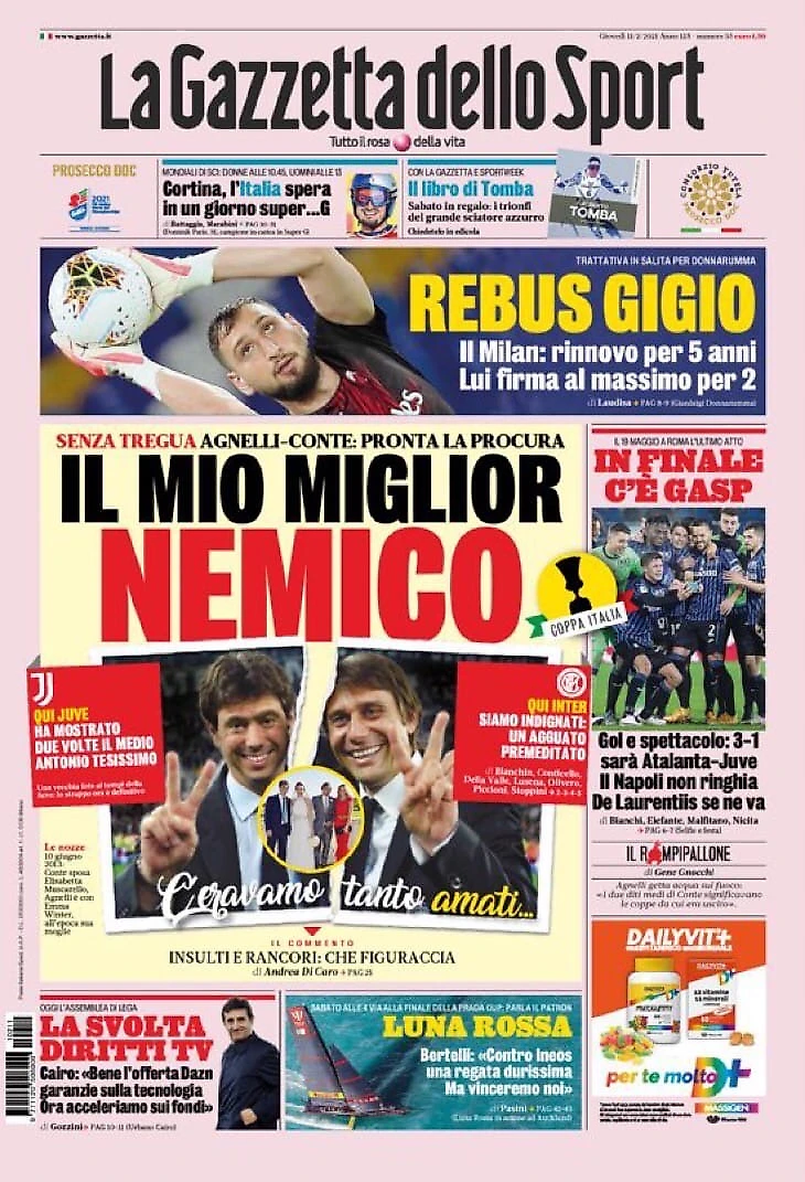 Победа «Аталанты» над «Наполи» и выход в финал Кубка Италии, а также продолжение конфликта Аньелли и Конте – в утреннем обзоре заголовков итальянских спортивных изданий в блоге «В гостях у Кальчо».