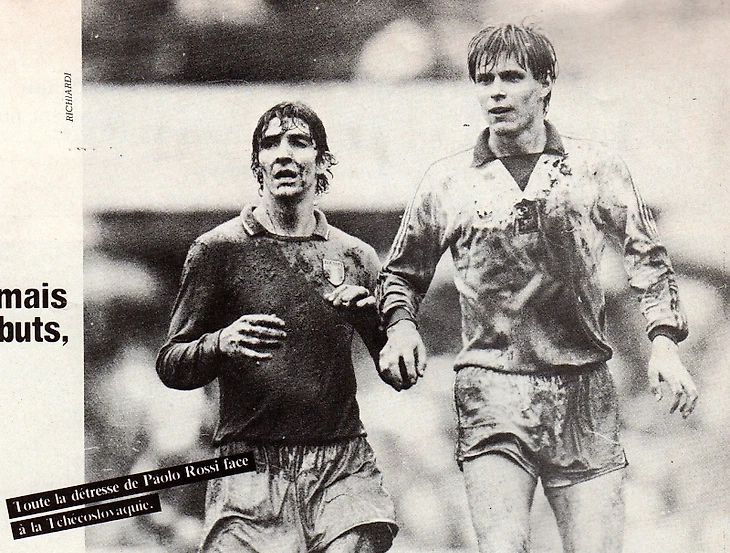 Предстоял сложный матч, но чехословаки на удивление выглядели спокойными. «Мы все с нетерпением ждем матча. Играем против чемпионов мира на их поле и нам нечего терять. Мы постараемся себя показать как можно лучше, бороться изо всех сил и оставить хорошее впечатление», скажет чехословацкий капитан Ян Фиала. А через мгновение с озабоченностью добавит: «Хорошо, если нам удастся сдержать Росси». Эта задача была поручена 29-летнему стопперу из пражского Богемианса Зденеку Прокешу, который так отреагирует на новое задание:«Росси-уникальный футболист, но я все же думаю, что против него можно играть». Совершенно не дрожали коленки и у дебютанта сборной Слоупа: «Я с нетерпением жду матча. Я не боюсь и считаю, что не будем иметь страха даже перед чемпионами». Что ж, посмотрим, были ли эти слова обычной предматчевой бравадой или...