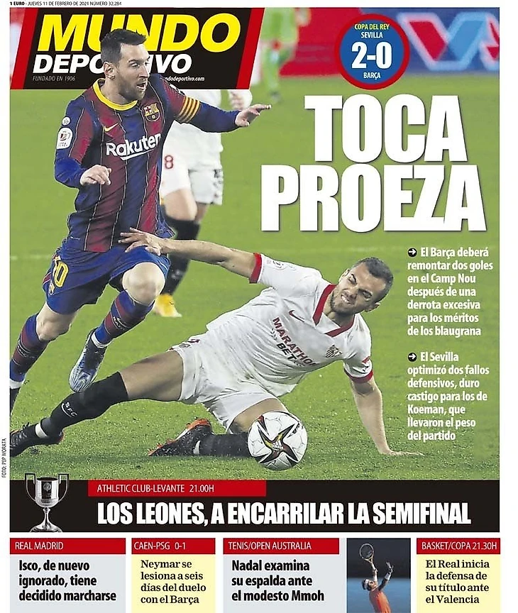 Сегодняшние газеты вышли с соответствующими заголовками. Титульная страница «Mundo Deportivo» выглядела следующим образом.