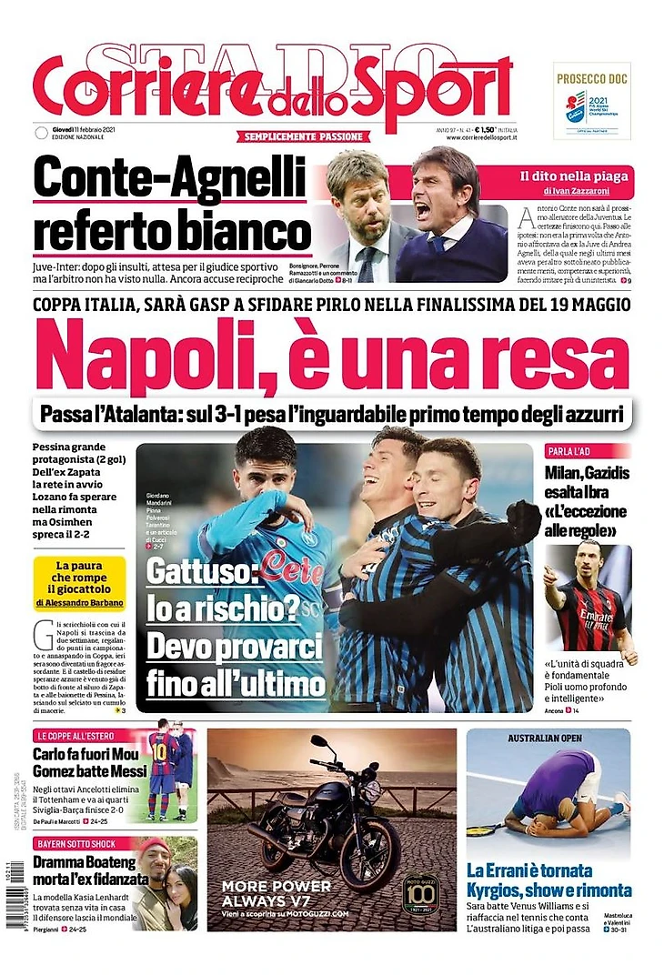В Италии было не менее значимое противостояние. Ответный матч полуфинала Кубка Италии между «Аталантой» и «Наполи». Первый матч закончился без голевой ничьей, поэтому минувший матч в Бергамо был решающий. Подопечные Гасперини уверенно обыграли команду из Неаполя забив 2 мяча уже к 16 минуте матча. В последствии «Наполи» один мяч отыграл, но более ничего не смог противопоставить «Аталанте», под занавес матча пропустив третий мяч.