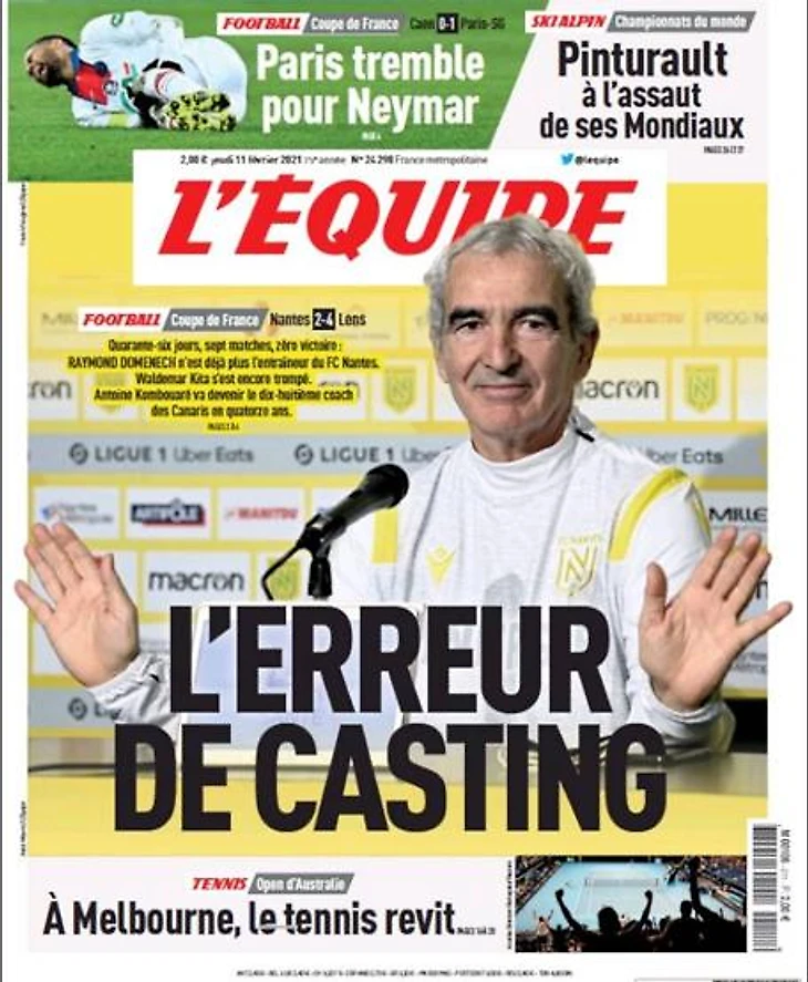 Ну, а Раймона Доменека, главного тренера «Нанта», называют «ошибкой кастинга». Причиной тому, все те же матчи кубка. «Канарейки» дома уступили «Лансу», забив первыми, умудрились пропустить 4 мяча и выбыли из турнира.