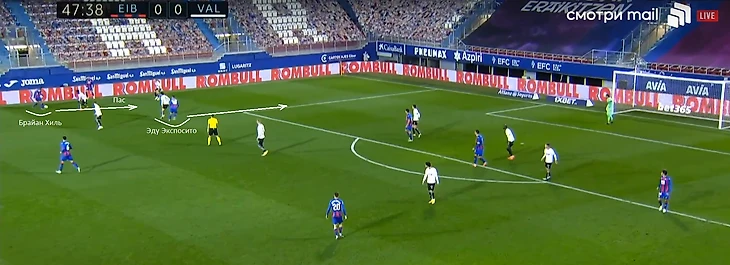 В матче против «Хетафе» Брайан исполнил классную проникающую передачу в штрафную под удар Кике Гарсия. Обратите внимание, что в момент контроля мяча его окружает 4 соперника.