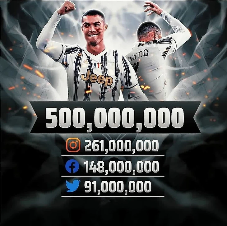 Криштиану Роналду первый, кто набрал 500 млн фолловеров в социальных сетях 📱