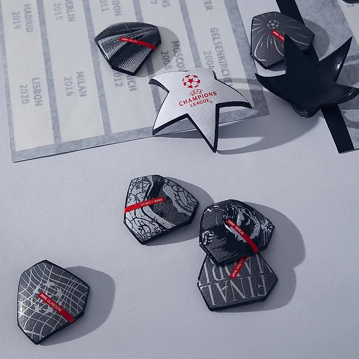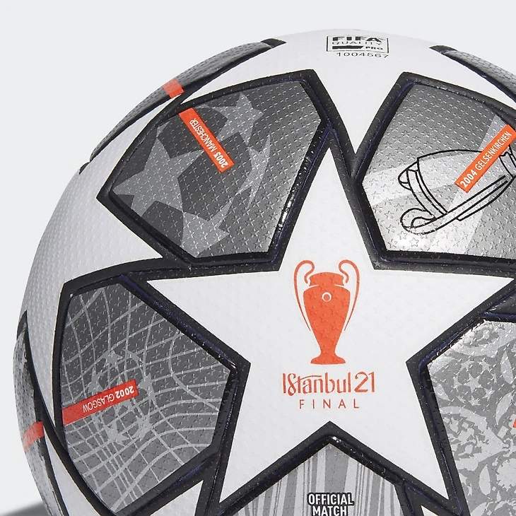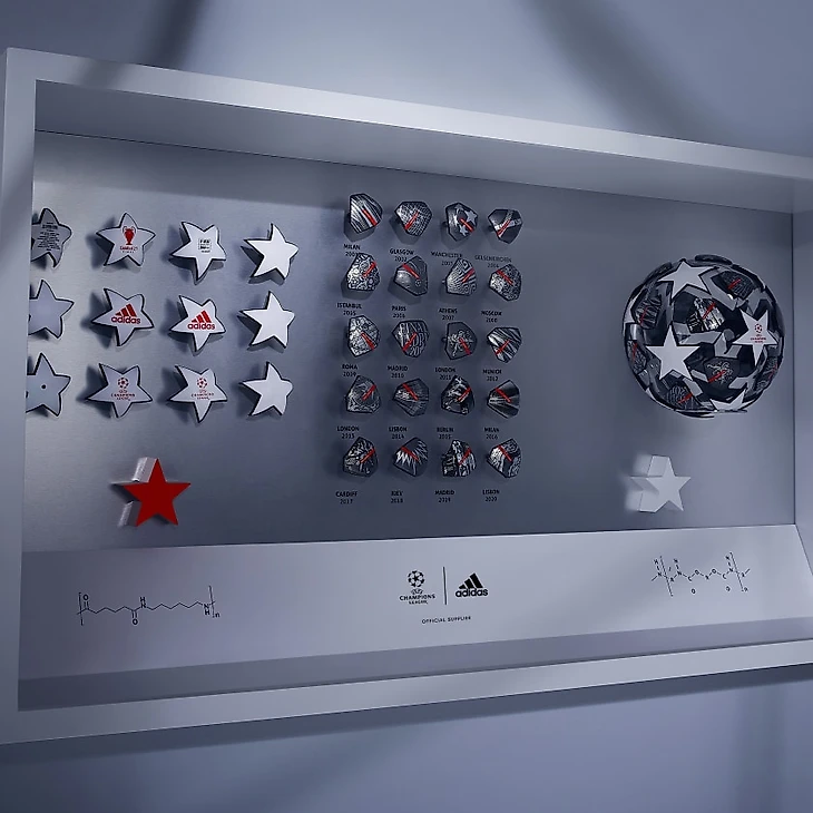 Мяч состоит из 16 звезд и 20 серебряных панелей – каждая из них отсылает к городу, в котором игрались финалы ЛЧ за последние 20 лет.