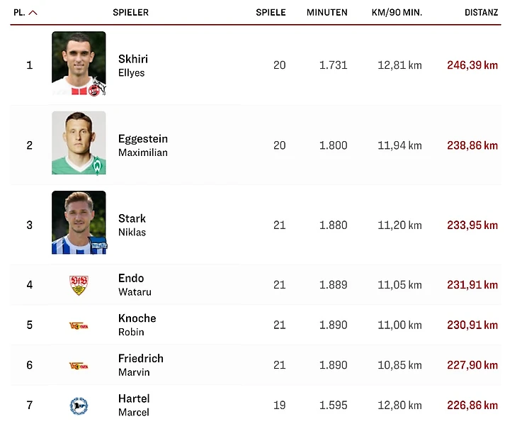 *игрок – кол-во игр – кол-во минут – в среднем км за 90 мин – всего км