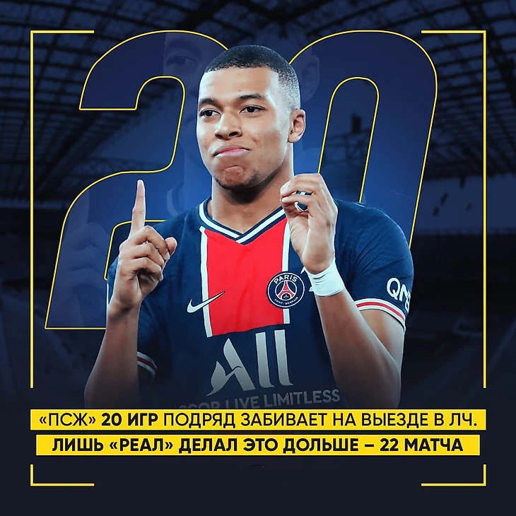 ПСЖ разгромил «Барселону» и продлил серию выездных матчей ЛЧ с забитыми голами до 20. Чтобы побить рекорд «Реала» (2010-2014), парижанам нужно забить еще в 3-х гостевых играх турнира.