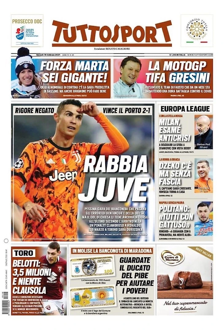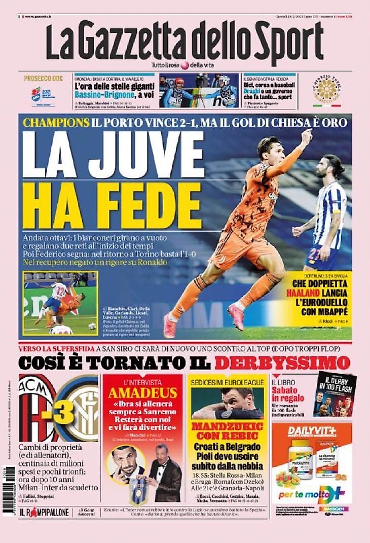 «Юве» имеет веру. Заголовки Gazzetta, TuttoSport и Corriere за 18 февраля