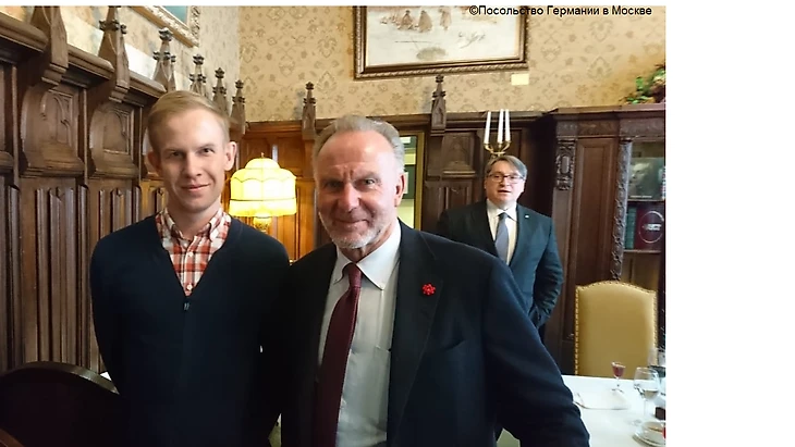 Николай: В текущем розыгрыше Лиги чемпионов мне посчастливилось посетить два матча с германо-российским противостоянием. Сначала я был на матче «Локомотива» против «Баварии», я сопровождал Посла, он очень любит футбол. А потом съездил в Санкт-Петербург на матч «Зенита» против «Боруссии» Дортмунд. Мероприятия Посольства, связанные со спортом, относятся к моей компетенции. Иногда случаются рабочие встречи, о которых раньше было сложно даже мечтать. Например, в день игры «Локомотива» и «Баварии» мне довелось встретиться с Карлом-Хайнцем Румменигге!