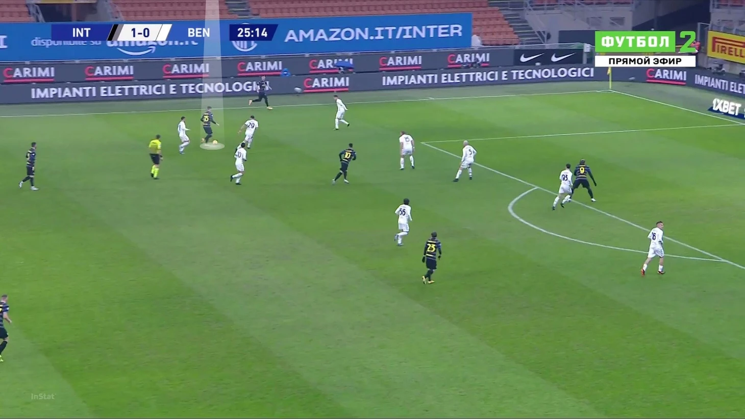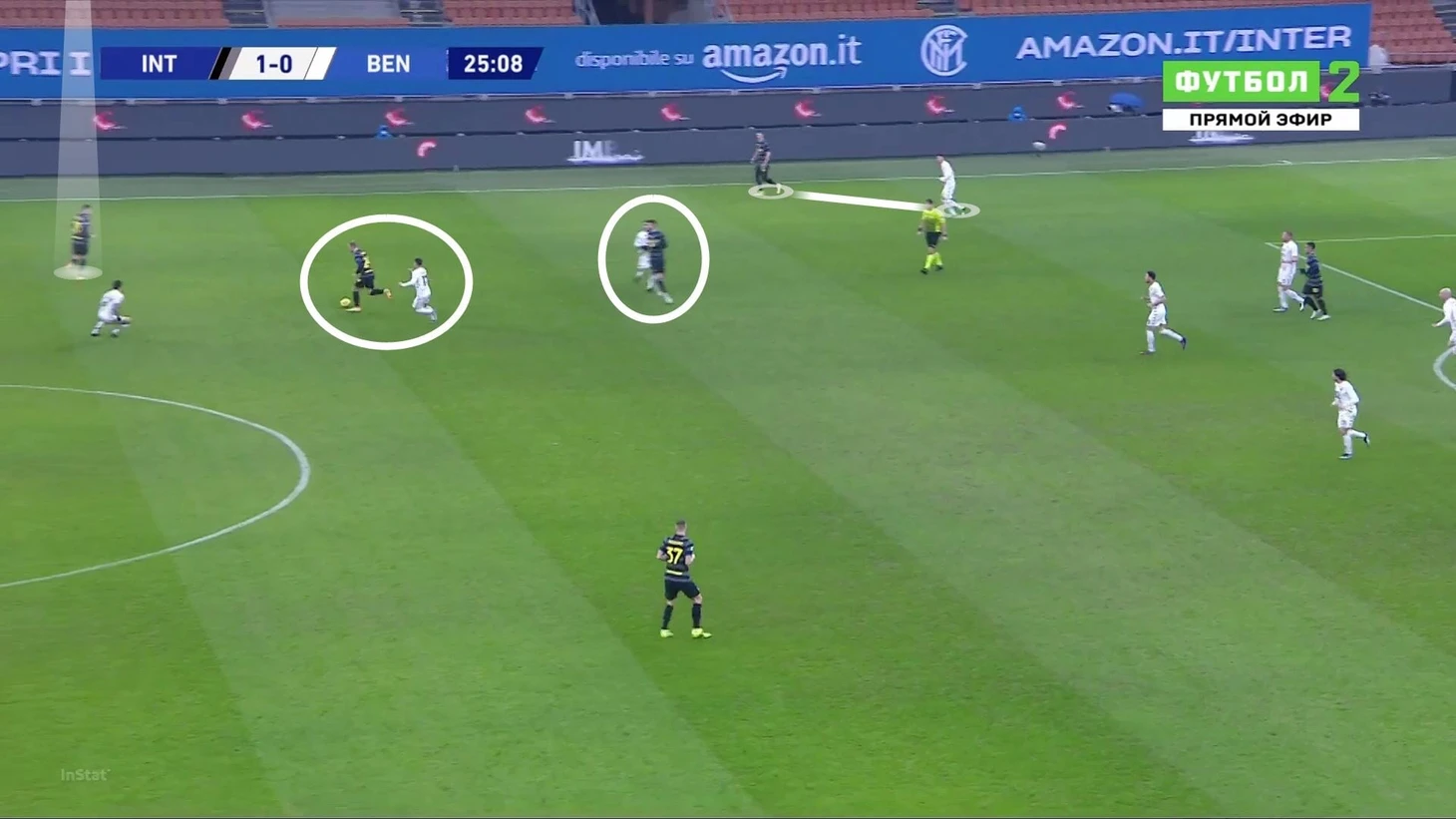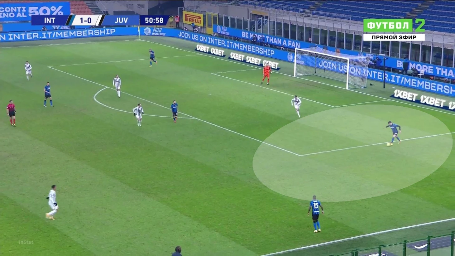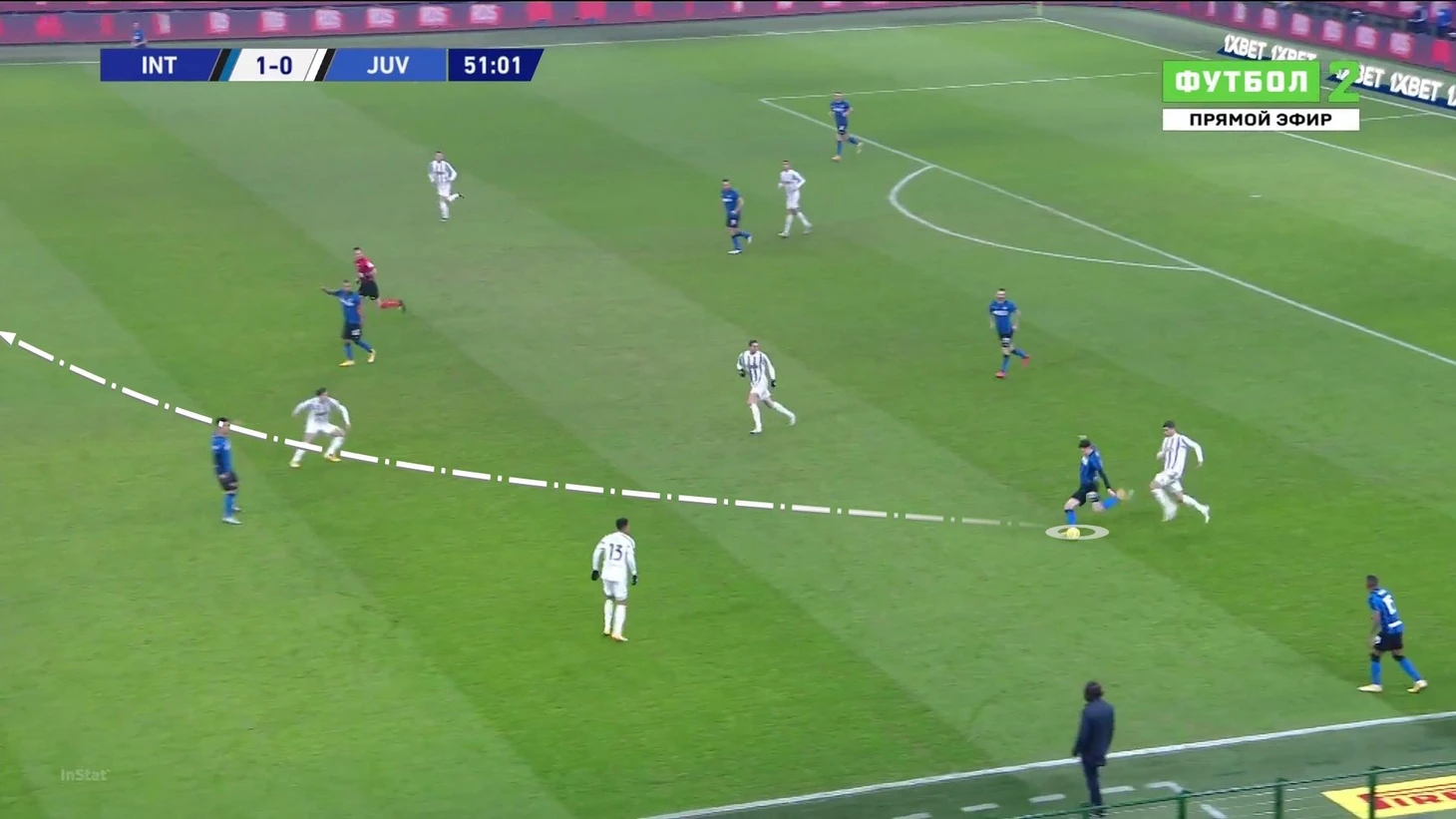 Начав проход свободным, Бастони без труда доставил мяч на чужую треть поля: