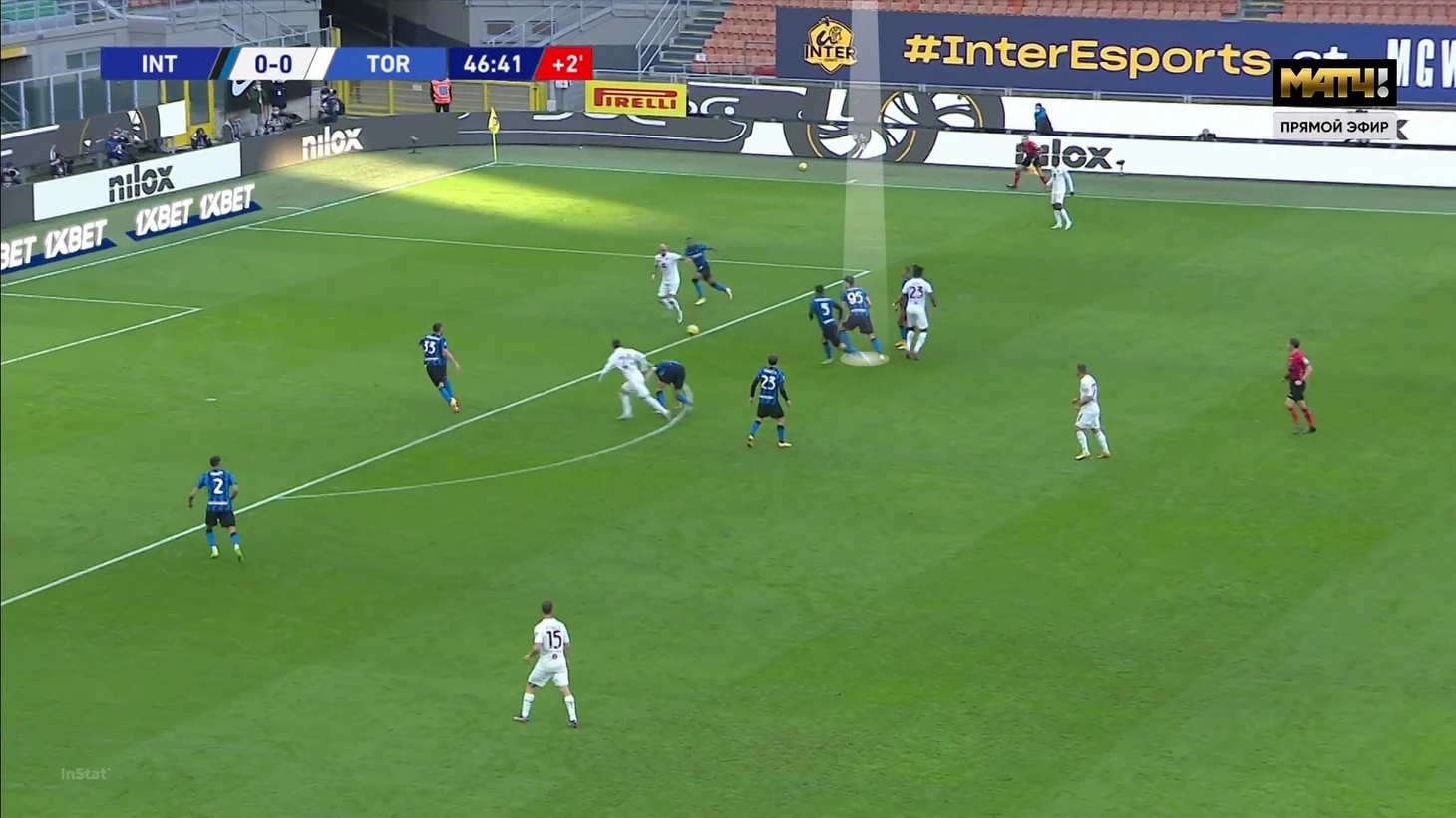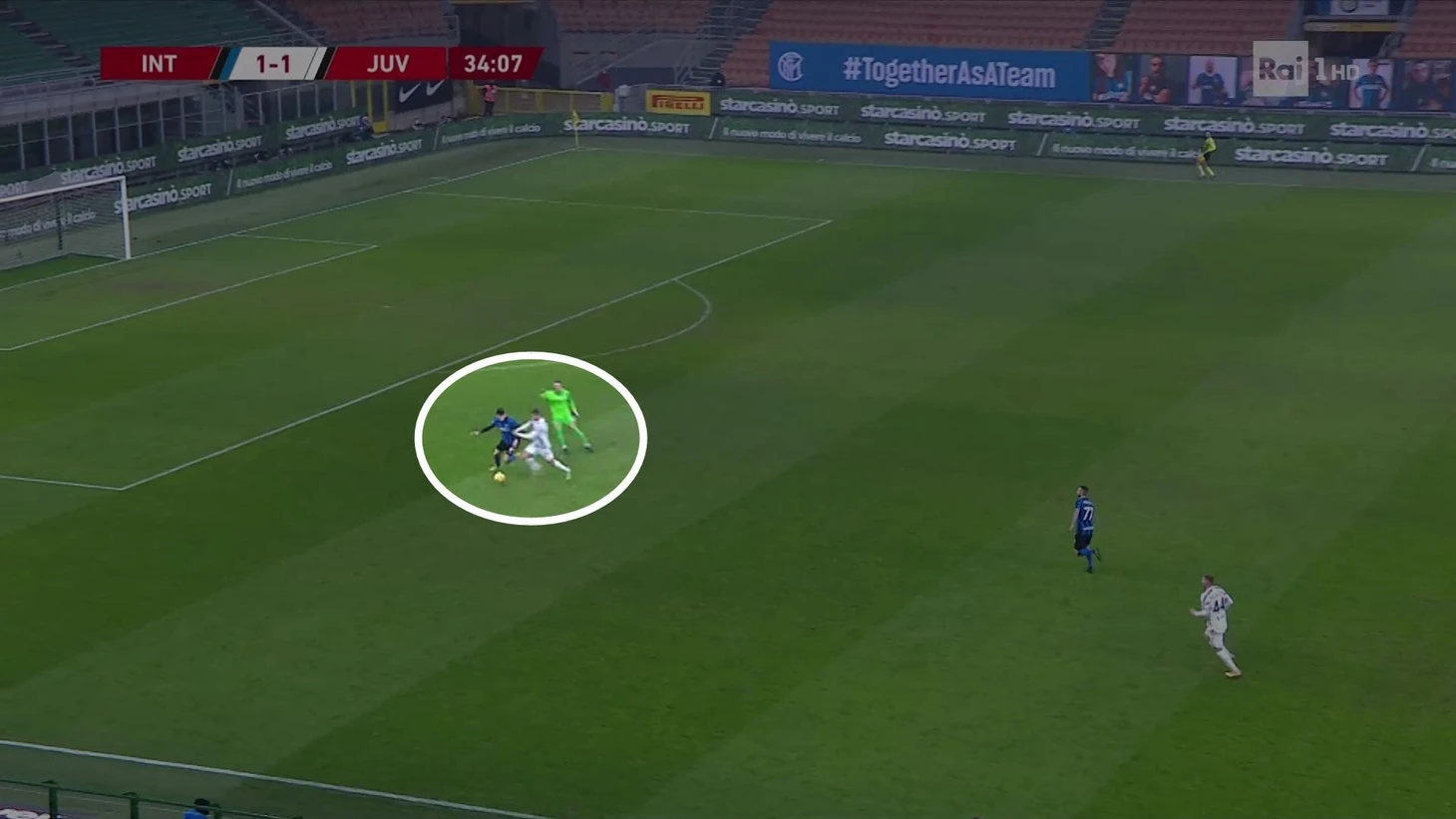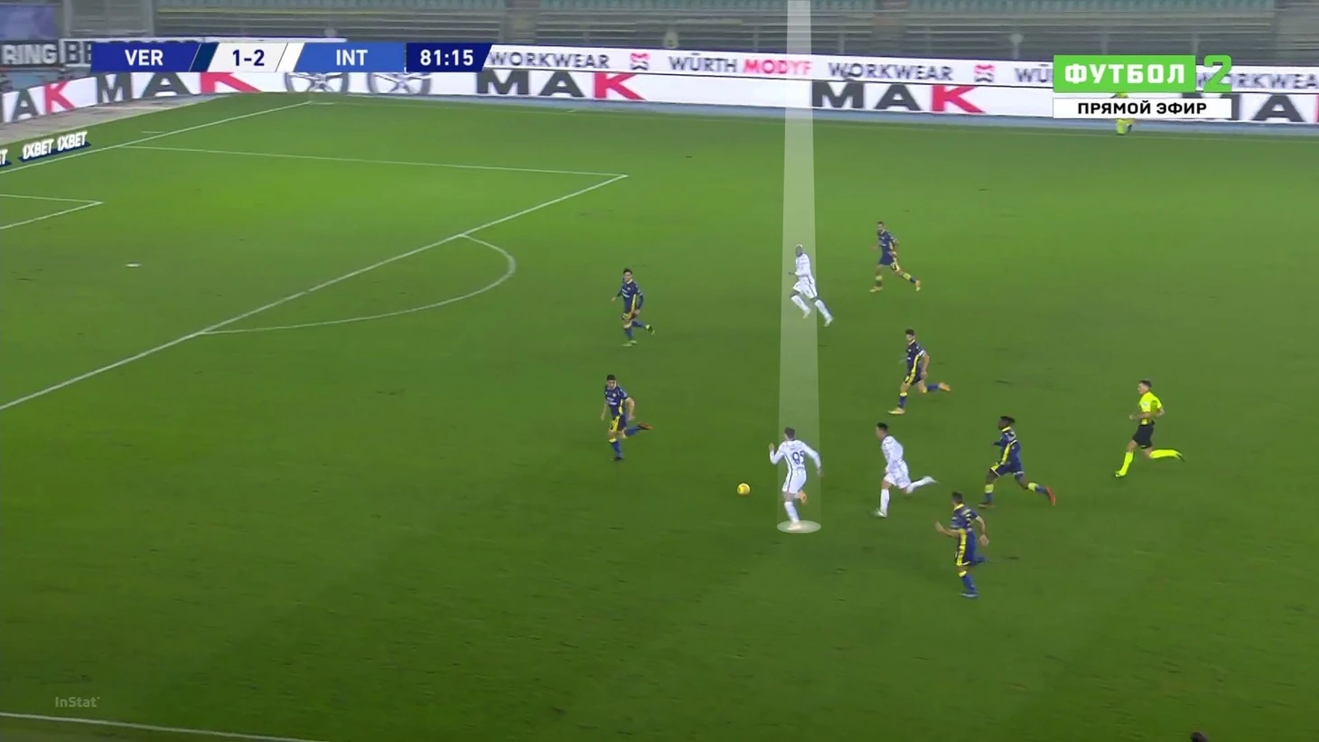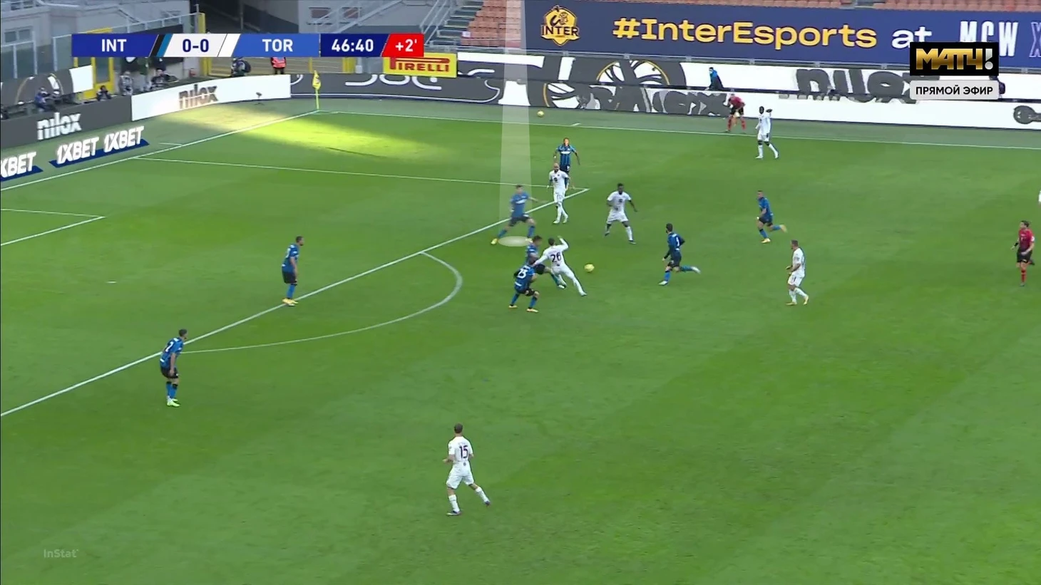 Начав проход свободным, Бастони без труда доставил мяч на чужую треть поля:
