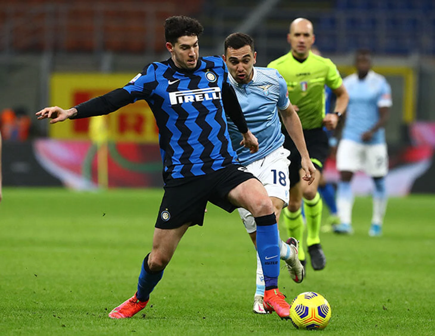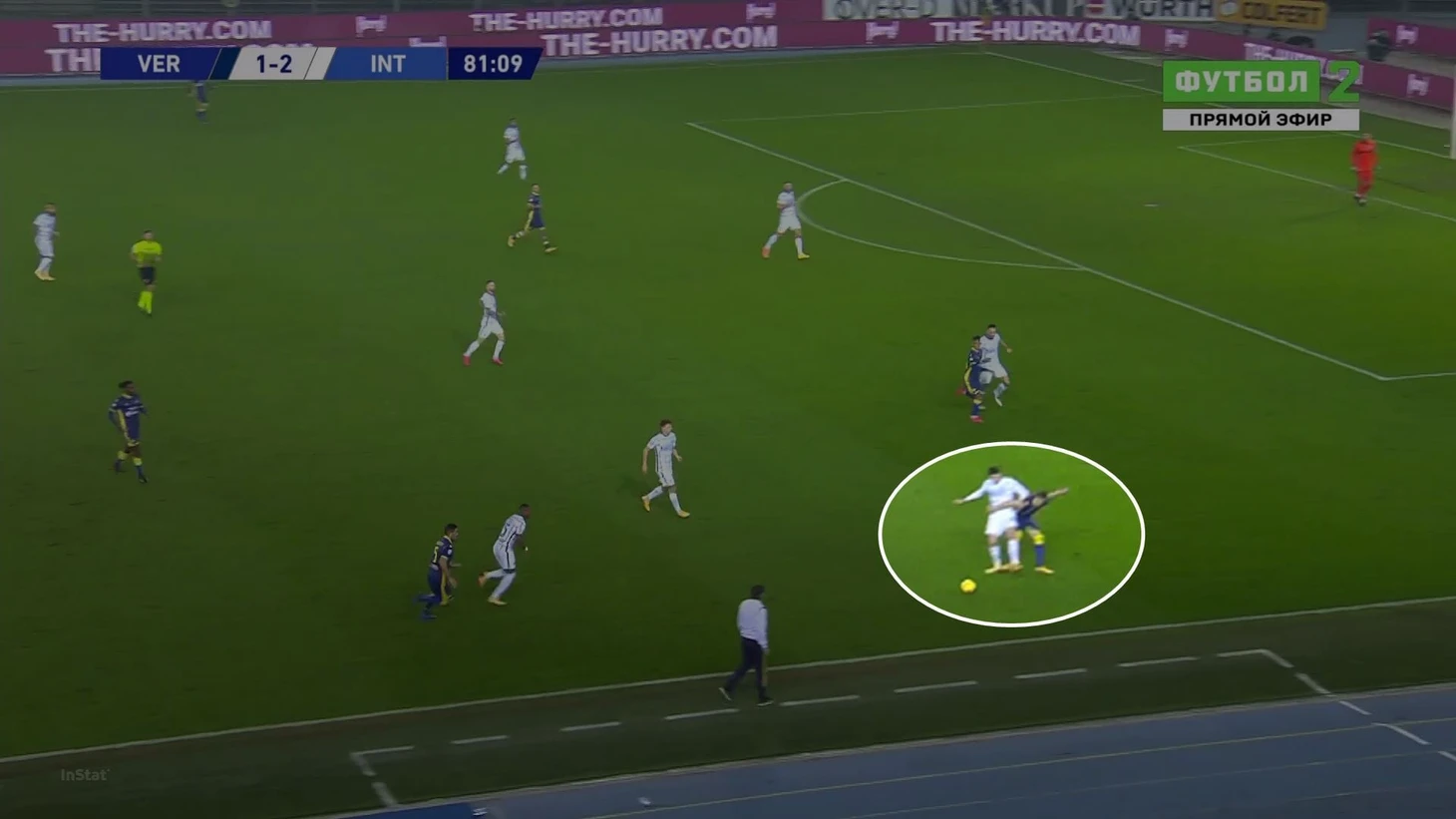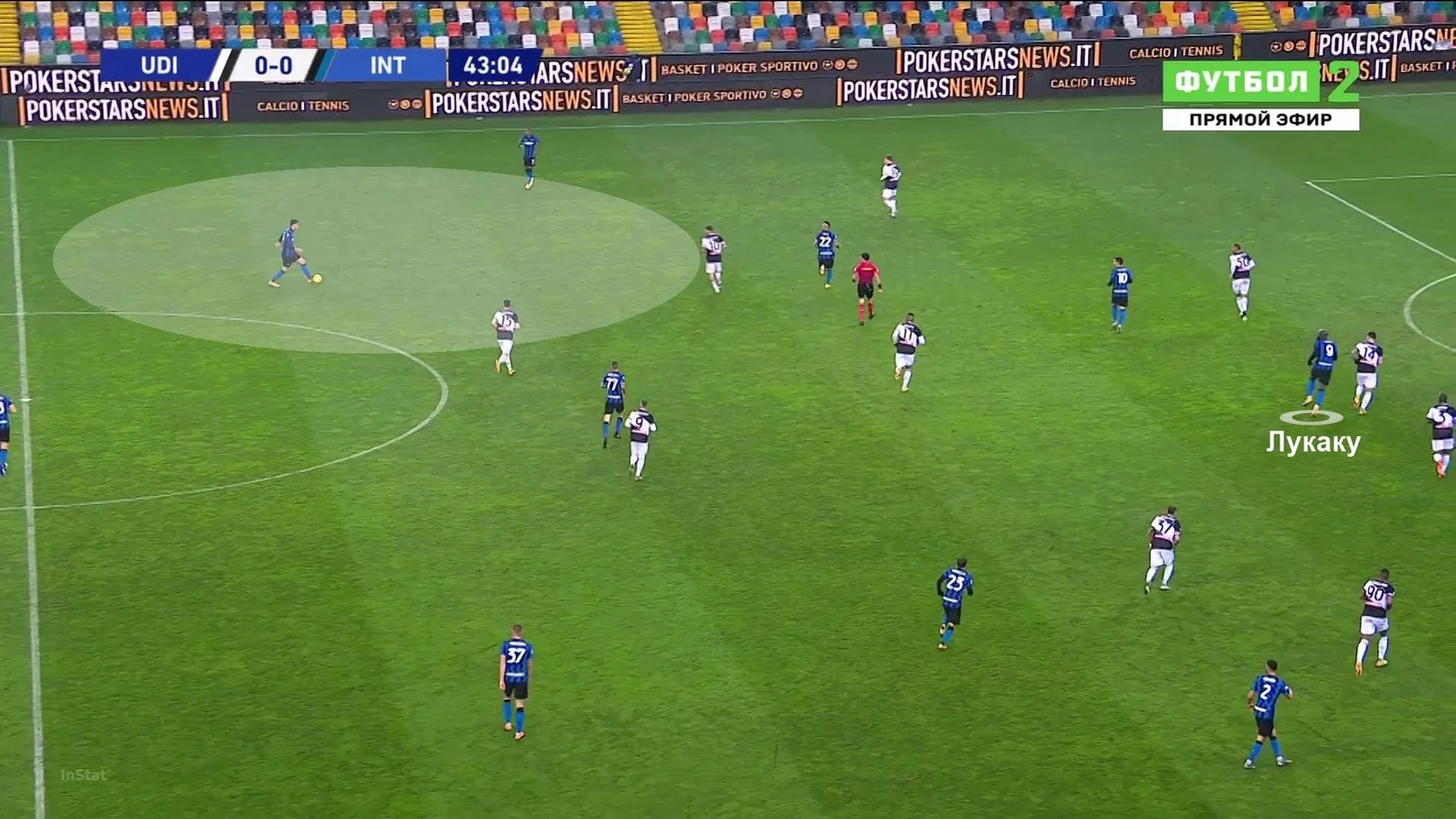 Соперник пока не принял оборонительную схему, а Бастони добежал с мячом до чужой трети (в этой атаке за ним успевают только Лукаку и Мартинес):