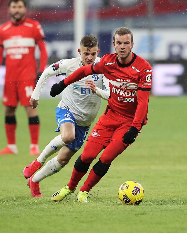 Российский футбол вернулся и вернулся во всей красе. Хотя вряд ли именно таким его представляли красно-белые. Спартак ожидаемо вышел на поле ВТБ Арены с новой схемой, которую команда Доменико Тедеско осваивала в перерывах от съемок "Красавы", благо что и соперник располагал к такому решению. По замыслу тренерского штаба, Зобнин должен был сдерживать Лесового, который на ряду с Шиманьски, является главной атакующей силой в арсенале Динамо. А пара Айртон и Мойзес растерзает своих оппонентов на противоположном фланге. - Схема не так важна, мы можем играть по разным схемам, но стиль остается одним и тем же, - резюмировал главный тренер Спартака. - Здорово, что мы можем быть гибкими. И здесь Доменико не обманул. Если отбросить переход на новую формацию, то по содержанию красно-белые провели матч, который ничем не отличался бы от того, что уже знакомо нам по осенней части чемпионата. Все так же много розыгрышей через Павла Маслова, который быстро принимает отличные решения для продолжения атаки. Даже Йоррит дебютировавший за свой новый клуб в официальном матче был копией Умярова, хоть и занял место на поле не вместо Наиля, а заменил Алекса Крала. Напомним, что чех получил небольшое повреждение и его решили приберечь.