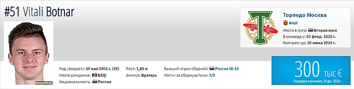 Зимой 2020 года Виталий перешёл из структуры команд Локомотива в московское Торпедо. И тогда многие болельщики Локомотива негативно высказались за такое решение своего воспитанника. Но в наш топ вратарь Торпедо попал исходя из своего таланта и потенциала вырасти в очень хорошо голкипера. В этом сезоне он во второй половине осеннего отрезка стал основным голкипером команды, и проведя 12 матчей в 5-ти из них он не пропустил. Из качеств отметим игру в воздухе, при хорошем росте 1,87, смелость в эпизодах, реакцию и ловкость.