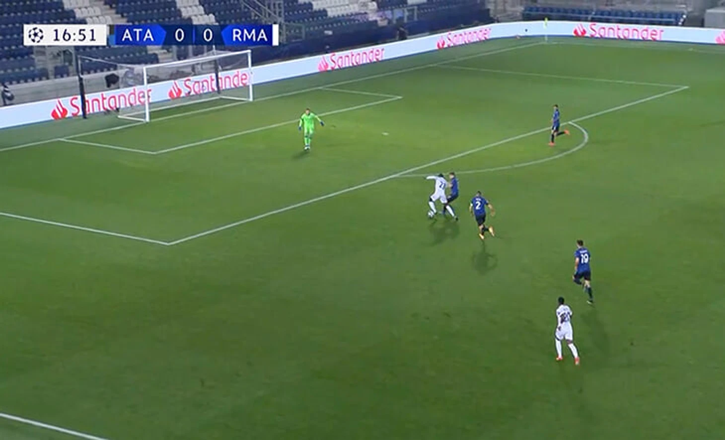 Все началось на половине «Реала». Гости справились с агрессивным прессингом «Аталанты» и воспользовались дырой в центре защиты: Менди отдал на Иско и побежал вперед, испанец отпасовал на Винисиуса, а тот запустил Менди в свободную зону. Француза догнал Фройлер – и завалил его на газон.