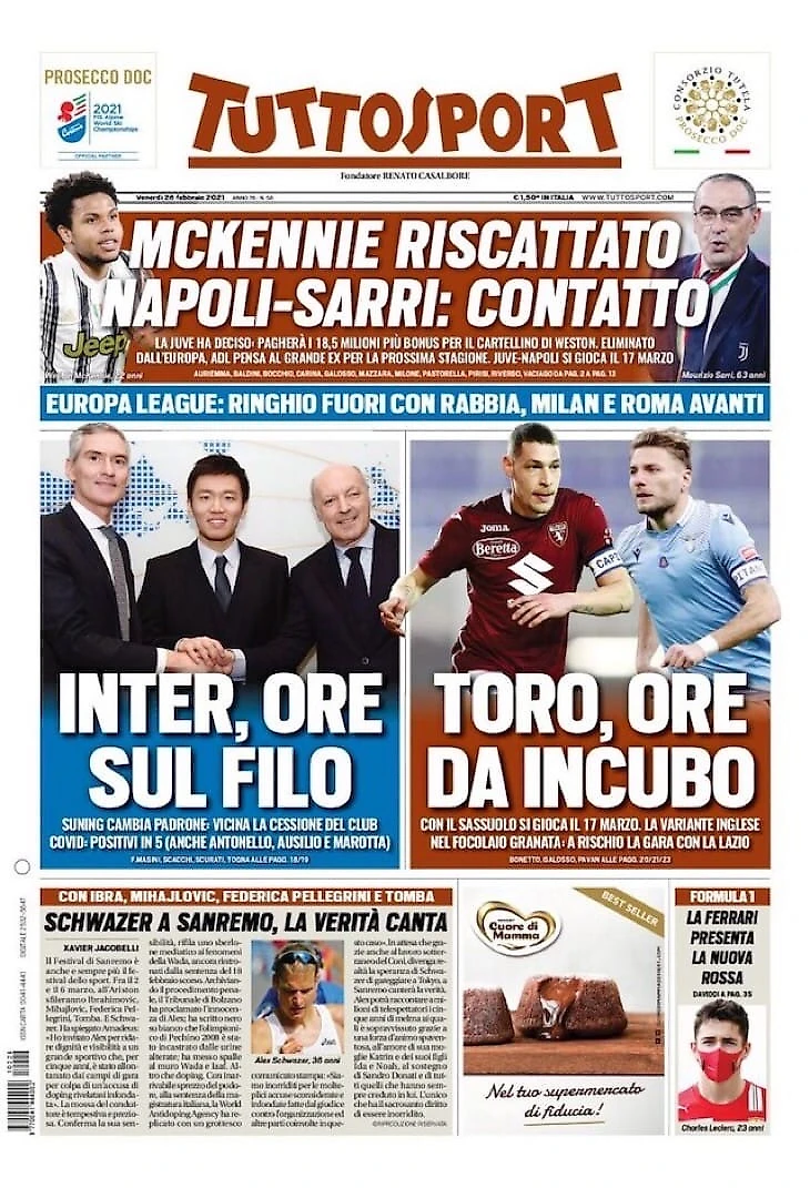 Suning меняет хозяина: близка продажа клуба. Ковид: 5 человек сдали положительные тесты (среди них также Антонелло, Аузилио и Маротта).