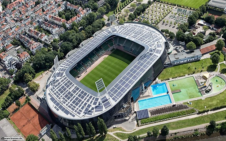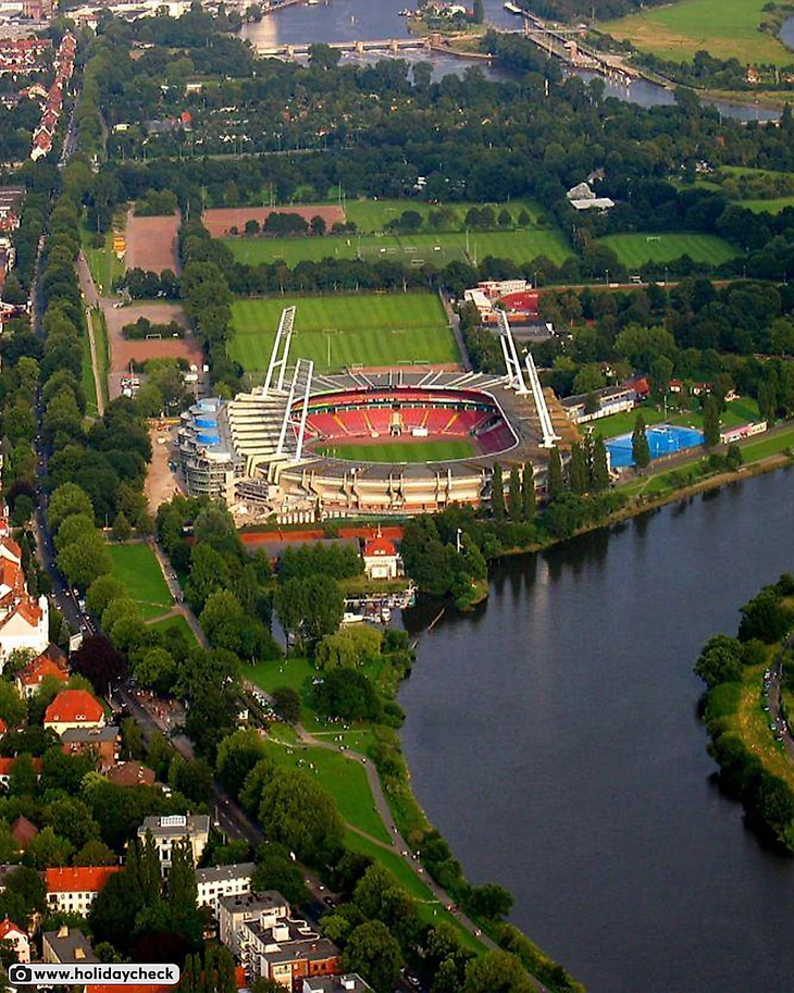 Бремен, Германия. Здесь и расположена арена «Везерштадион», на которой проводит свои матчи футбольный клуб «Вердер», выступающий в Бундеслиге
